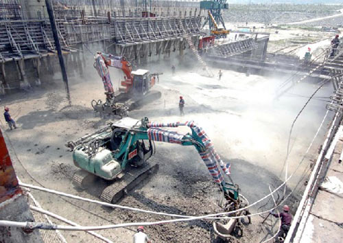 排除方法:检查蓄能器压力,关闭蓄能器卸荷阀,检修或更换反向开关,采用反复换向和反向泵送的方法将S管区域内的骨料泵送出去,必要时可打开料斗的卸料口清除骨料沉积物。所泵送的砼应满足可泵送性要求。
