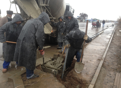 ●对于分配系统有恒流泵的(有的混凝土输送泵分配系统和主油缸共用一个油泵)。在进行完上述步骤后,还应检查该泵的压力是否正常,压力不足则调整或拆检其磨损情况。