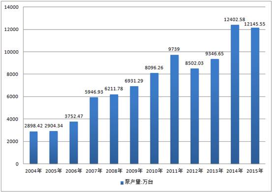 2004-2015年中国泵行业产量情况