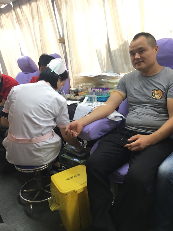知道这个消息后,厂里厂外的同事们立马传播开来,部分不知道自己血型的同事更是主动请假要求去验血。正在大家都积极想办法的时候,工厂负责人走了进来,他拍拍手,示意大家都安静一下,看到大家都安静下来,接着说到:“各位同事,大家应该都知道了消息,现在小唐的父亲烧伤了在湘潭市中心医院急救,医院血库库存不足。公司也看到了大家都为小唐着急,刚才我们已经联系到医院,采血车稍后就会到工厂里来,三民全体上下都是一家人,愿意献血的同事现在就可以去厂门口排队填资料?!贝蠹姨盗饲榭觯挤追妆硎疽?,还有些不知道自己血型的同事更是很迫切的抢着要先验血。