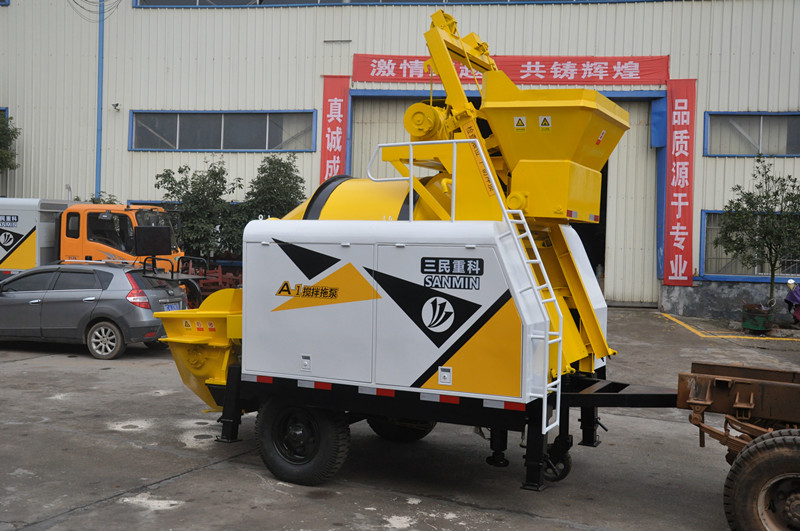搅拌拖泵,顾名思义就是搅拌机+拖泵。搅拌机可以选择350和450,以及500?;炷帘每梢匝≡?0泵,40泵,50泵。