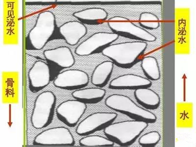 通俗地讲,就是水泥混凝土中颗粒级配不合理,大直径的颗粒比例比较大,使得水分不能够均匀稳定地分散到颗粒间的空隙里,在混凝土运输、振捣、泵送的过程中,水泥和骨料沉降,在混凝土凝固前产生水分渗出到混凝土表面的现象称做泌水。