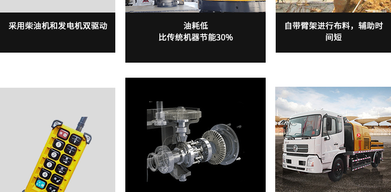 在有充足电源供应的情况下,采用市电驱动可有效降低油耗,起到节能环保的效果。在电源不足的情况下,可以采用柴油驱动,泵车的设计具有更广泛的适应性,可广泛应用于楼房建筑。