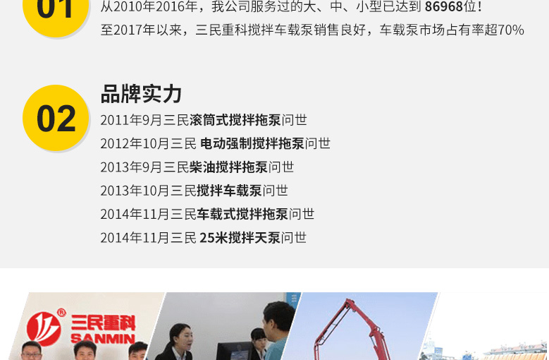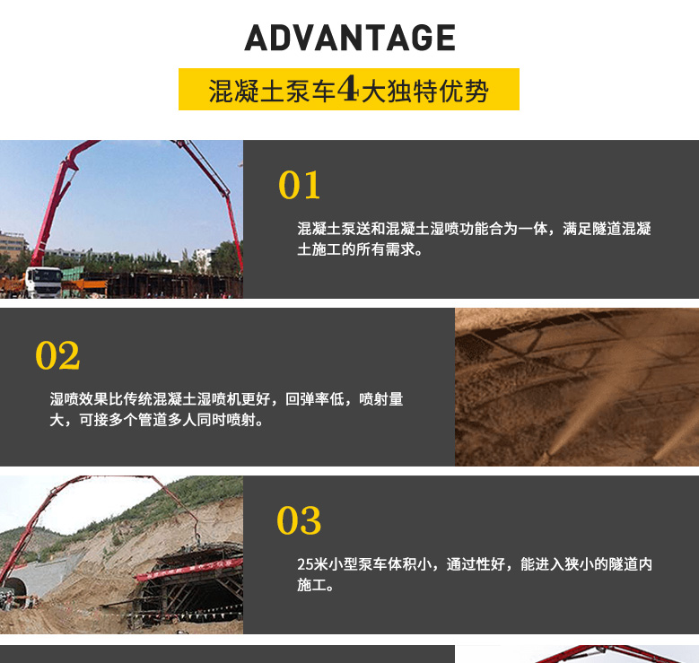 简介:25米混凝土输送泵车是三民重科专为隧道施工设计的一款电动防爆混凝土泵车,解决了隧道施工方面临的“用拖泵需要布管,工作效率低;用泵车体积过大,且有尾气不安全”的难题。