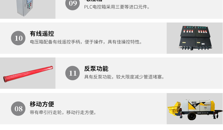 简介:1、采用先进S管阀换向,出口压力高,能满足细石混凝土高层和远距离输送 2、主油泵采用优质恒功率变量柱赛泵,系统压力高,效能高,运行平衡。搅拌装置驱动采用低速大扭矩油压马达。具有反泵功能,大限度减少管道堵塞。