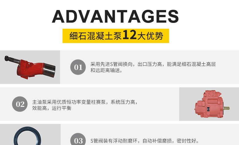 简介:细石混凝土泵-HBT20-8-30的主油泵采用优质恒功率变量柱赛泵,系统压力高,效能高,运行平衡。