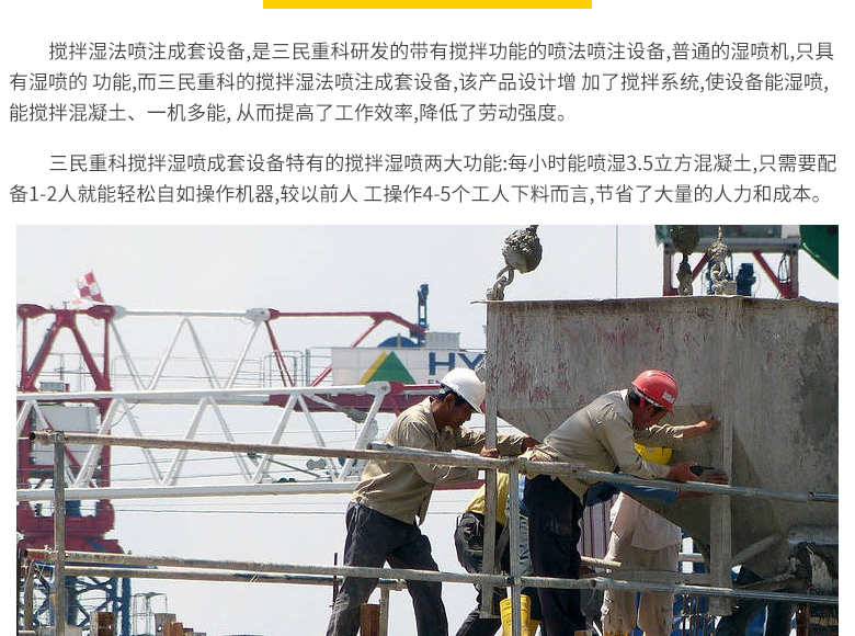 简介:三民重科搅拌湿喷成套设备特有的搅拌湿喷两大功能:每小时能喷射3.5立方混凝土,只需要配备1-2人就能轻松自如操作机器,较以前人工操作4-5个工人下料而言,节省了大量的人力和成本。