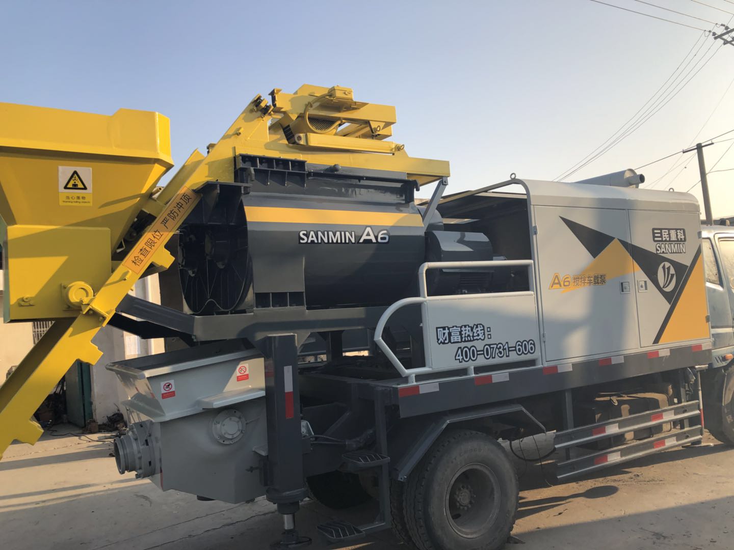 有了想法后,付老板就开始留意起来,只要到了别的工地上,他就会去看别人用的什么设备,甚至他还会问问别人的使用情况,尽量做到让自己心中有数。通过一段时间的观察,他发现很多工地上都在使用三民重科的一款车载泵,这种车载泵集搅拌和泵送于一体,既方便又高效,使用这款车载泵的工人也对它赞不绝口。“这不正是我要的设备吗?就它了!”心里选定了这款设备后,第二天付老板就动身来到了位于湘潭的三民重科工厂。