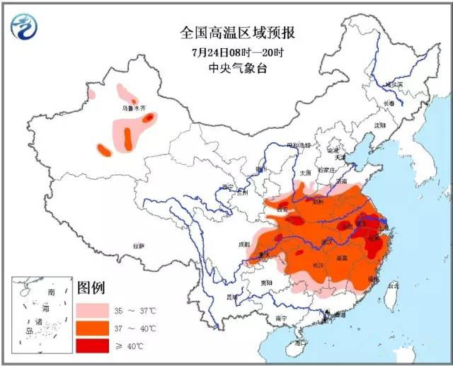 气温到底有多高呢?我们不妨先看下,气象台新发布的全国高气温分布图:
