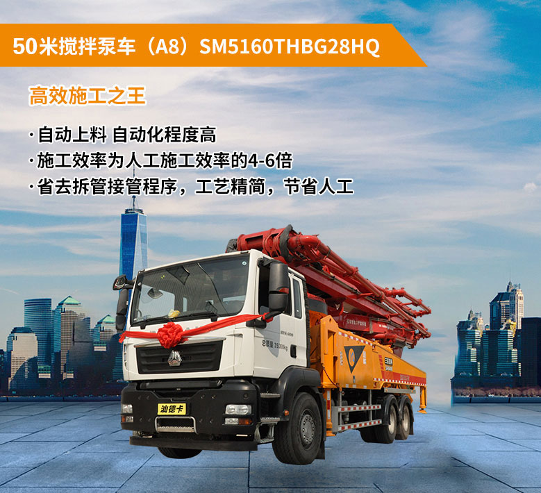 简介:50米搅拌天泵车是三民重科研发一款新型的混凝土泵车,由强制搅拌机与混凝土泵车组成的,可以实现自动上料、搅拌、泵送为一体,真正做到了机械化施工,此泵车适用于中小型施工作业,填补小型,野外,分散等混凝土施工的空白,采用的是强制式双卧轴搅拌机。