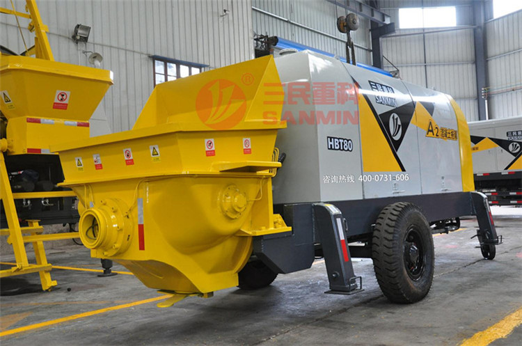 1、人为原因:主要是一些新手,不够了解混凝土搅拌拖泵的操作流程,三民重科对于每一位购机客户都会安排专人上门进行一对一的培训,让您完全了解掌握搅拌拖泵的搅拌系统操作规范。同时,我们也要注意,操作人员在操作的时候一定要集中精神,,时刻注意泵送压力表的读数,如果施工过程三民旦发现压力表读数突然增大,就必须立即反泵2-3个行程再予以正泵,这样堵管现象即可排除。
