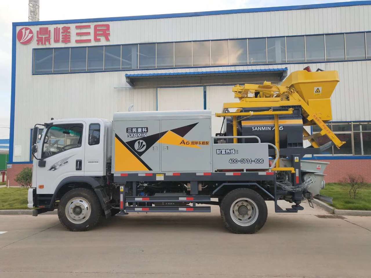 三民重科混凝土搅拌拖泵,搅拌车载泵,搅拌天泵,厂家提醒您:在年底购买一台混凝土搅拌泵送一体机化设备无疑是一个明智的选择!