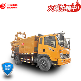 6、施工效率高;现场搅拌连续泵送,与传统搅拌机搅拌、人工上料相比,效率提高5倍以上。