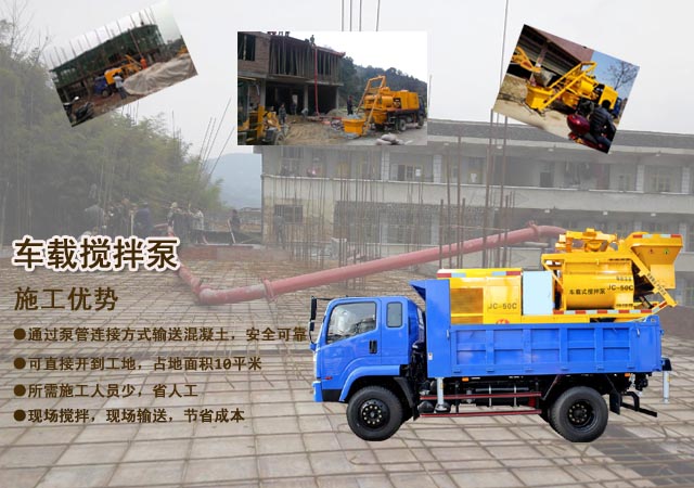 3,搅拌机 车载泵VS搅拌车载泵前者:由于车载泵没有搅拌系统,需要配置滚筒搅拌机或强制搅拌机,造成使用设备多,移动不便,运输费用多。搅拌车载泵:只需开设备的人员1个,布管道的人员2个,喂料直接用小型装载车就行,人员配比方面至少可节省一半。