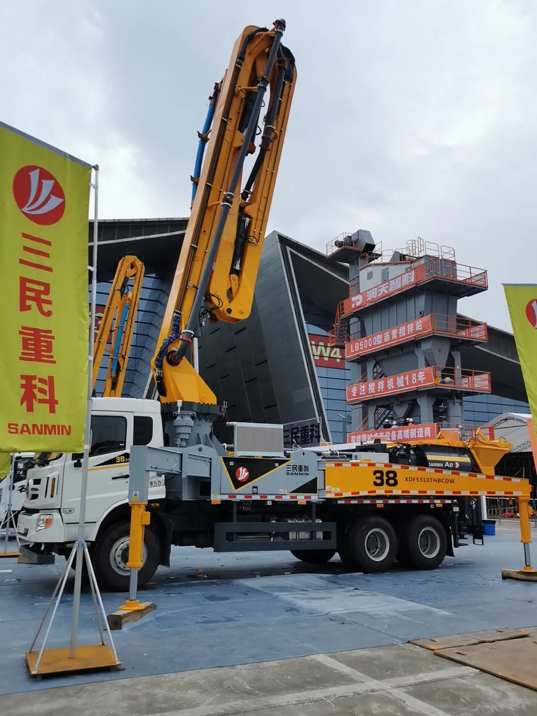 展会现场A8-38米搅拌臂架泵车侧面实拍