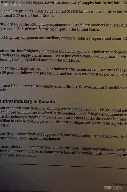 美国工程机械行业及周边附属产业在2016年一共贡献了130万个就业岗位,包括设计、制造、销售和供应链等岗位,占到美国总体工作岗位的1%,是美国制造类企业工作岗位的7%。